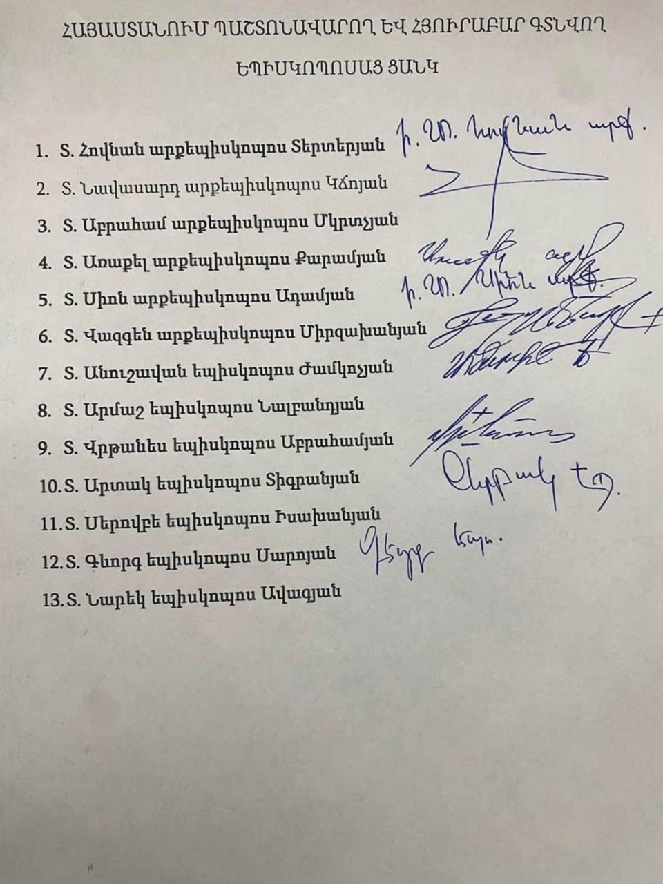 Над Армянской Апостольской Церковью — грозовые тучи. По информации телеграм-канала «The Geopolitics», тринадцать высокопоставленных иерархов — шесть архиепископов и семь епископов — открыто выступили с требованием отстранить от власти Святейшего Аршака и Католикоса Всех Армян Гарегина II. Это не рядовая внутрицерковная дискуссия. Это — штурм духовного центра страны, удар по самому сердцу национальной традиции.