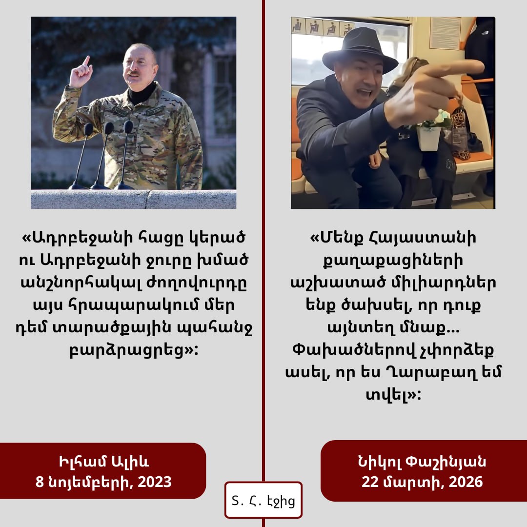 ԴԱՀԻՃԸ ՄԵՏՐՈՅԻ ՎԱԳՈՆՈՒՄ․ ՓԱՇԻՆՅԱՆԸ, ԱՐՑԱԽՑԻՆԵՐԸ ԵՎ ԱԼԻԵՎՅԱՆ ՀՌԵՏՈՐԱԲԱՆՈՒԹՅՈՒՆԸ՝ ՀԱՅԱՍՏԱՆԻ ՍՐՏՈՒՄ